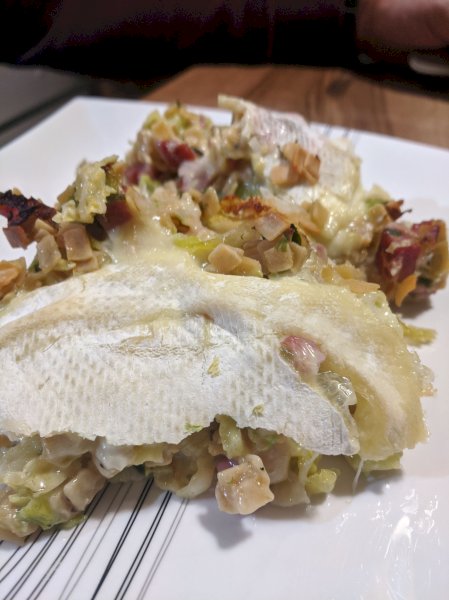 Mélangez le tout et mettre dans un plat à gratin (vos grezets cuiront au four avec le liant)! Coupez votre reblochon en deux et disposez le dessus!