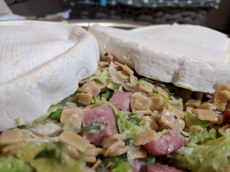 Mélangez le tout et mettre dans un plat à gratin (vos grezets cuiront au four avec le liant)! Coupez votre reblochon en deux et disposez le dessus!